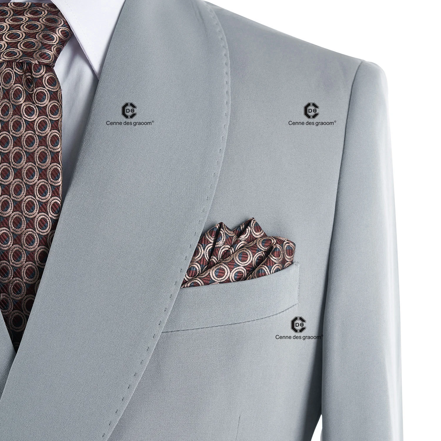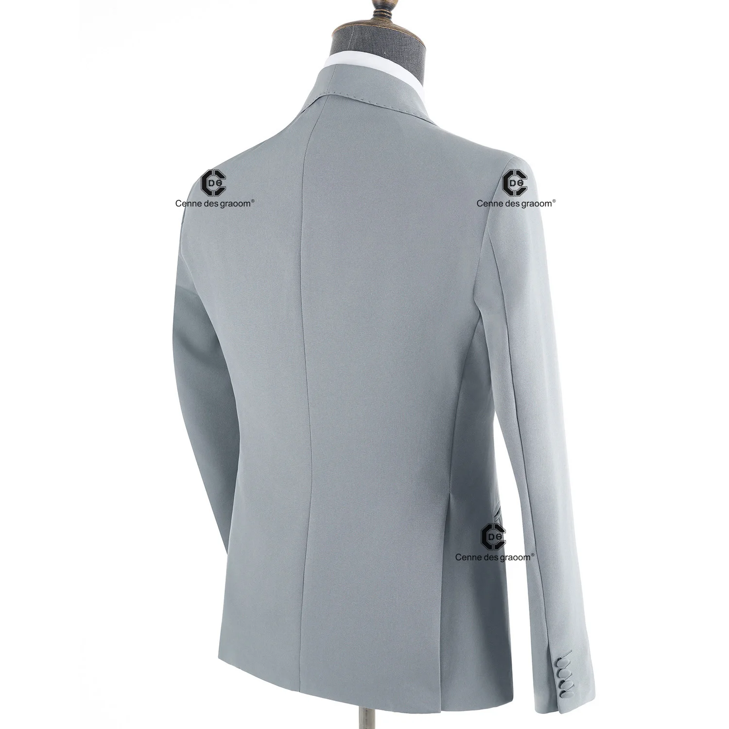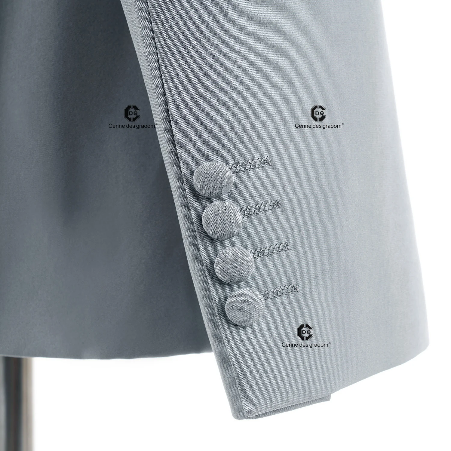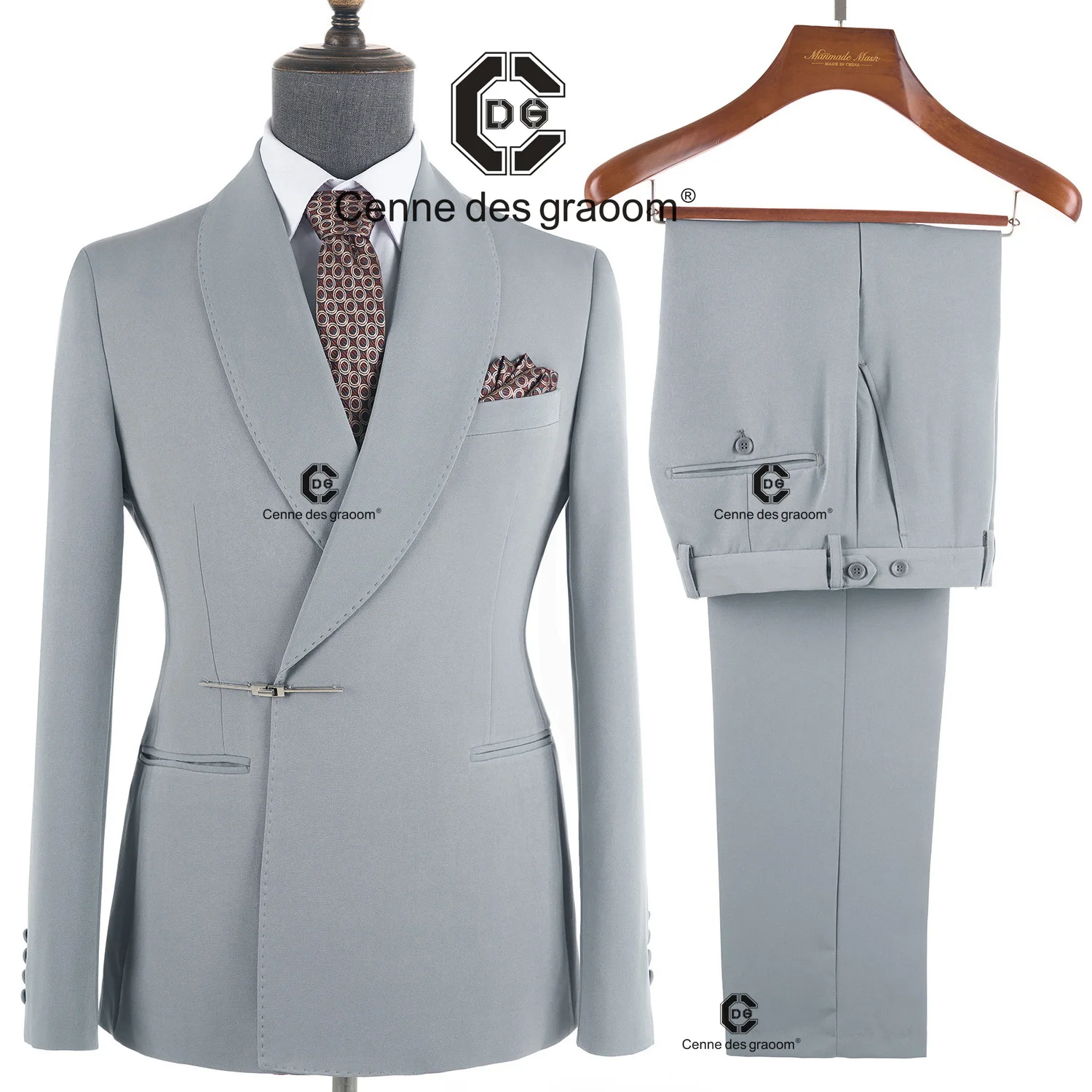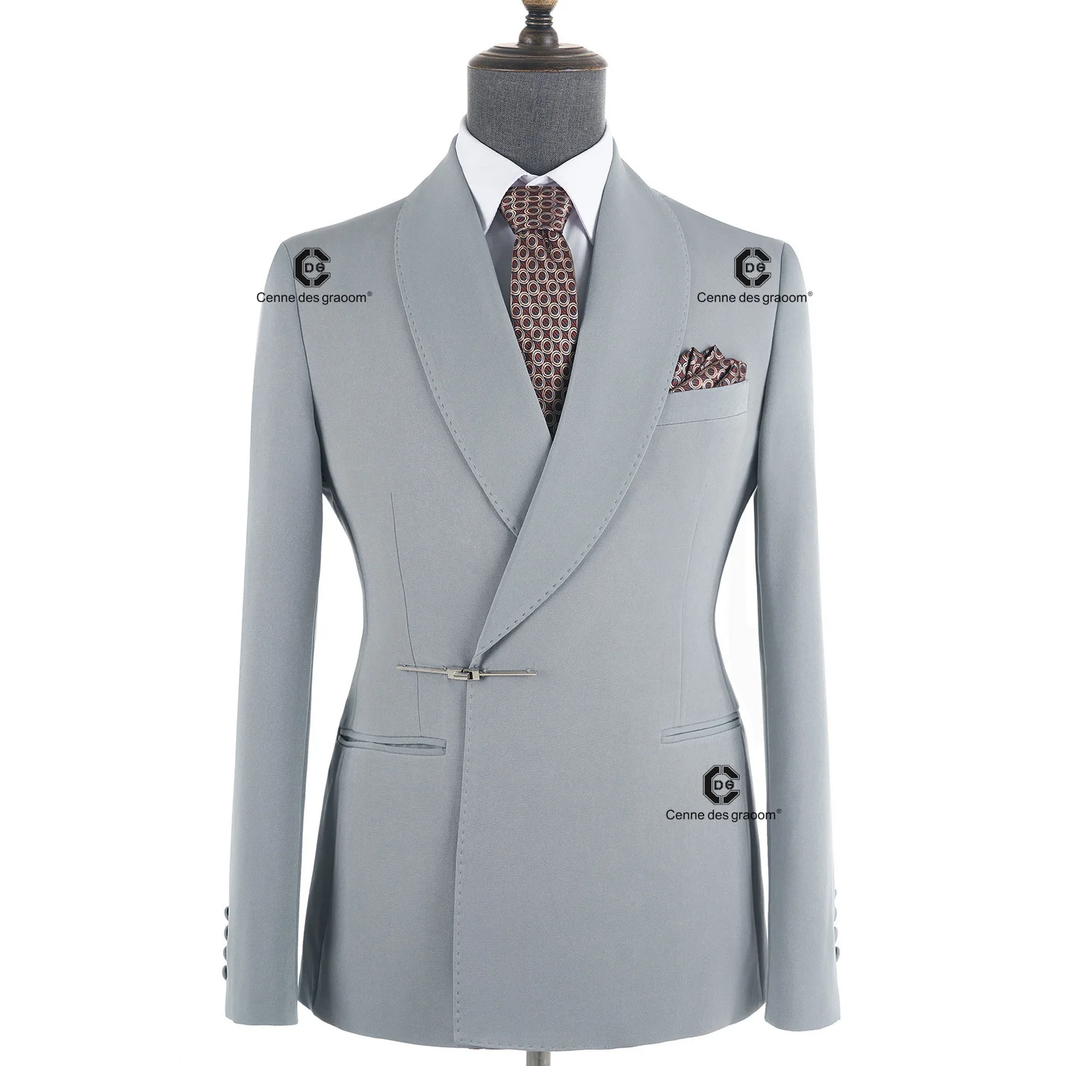 Cenne Des Graoom 2026 New Elegant Light Grey Men Suits Metal Side Release Buckle 2 Pieces Set High Quality Wedding Party Dinner